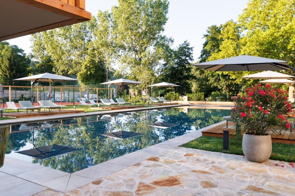 The family-run 4-star hotel is located directly on the South Styrian Wine Route. You’ll be staying in the center of Gamlitz, just a 2-minute walk from the main square. At Weinlandhof, culinary delights, wellness, and relaxation come together under one roof: Enjoy the small but refined wellness area featuring a sauna, infrared cabin, steam bath, whirlpool, and an indoor pool located in the main building. A modern sauna house with a relaxation area and outdoor pool completes the offering. The beautiful garden blooms from spring through autumn with lush flowers and includes a small pond and a seating area under the vineyard arbor. The main building of Weinlandhof offers spacious rooms with private bathrooms, mini-bars, flat-screen TVs, and either balconies or French balconies. Right next door, the Weinlandhof Residence features 6 lovingly designed rooms and suites (25–148 ft²) that combine South Styrian coziness with modern comfort. They also offer generous balconies, covered private parking, and a bicycle storage room. Our natural cuisine spoils you with regional specialties and homemade classics — and of course, selected wines from the region. Discover the South Styrian Wine Route with its wineries and traditional wine taverns, and let our winemakers treat you to a classic South Styrian snack. Numerous hiking and cycling trails invite you to explore the picturesque hilly landscape. Throughout the year, you can also experience the cultural side of Southern Styria — from spring wine tastings to the grape harvest festival. Just a 2-minute walk away is the Motorikpark, Europe’s largest park of its kind, offering various walking and hiking trails. The Gut Murstätten Golf Club is 12 mi away.