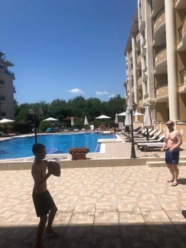 Facing the seafront in Pomorie, Apartaments Pri Stoyko is an apartment, featuring an outdoor pool and private parking. This apartment features air-conditioned accommodation with a balcony. The accommodation provides a sauna, free WiFi throughout the property and family rooms. The apartment provides guests with a terrace, a seating area, cable flat-screen TV, a fully equipped kitchenette with a microwave and a fridge, and a private bathroom with shower. At the apartment complex, all units are equipped with bed linen and towels. South Beach Pomorie is 300 metres from the apartment, while Eurojus Beach is 700 metres away. The nearest airport is Burgas Airport, 10 km from Apartaments Pri Stoyko.
