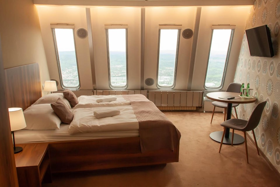 The building of a hotel in the Jested tower is an unique piece of architecture on the mountain 10 km far of city Liberec. A restaurant serving local and modern cuisine is available on site.