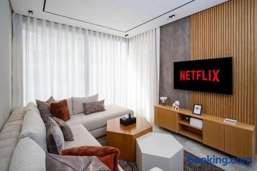 Located within the Maarif district in Casablanca, Studio chic avec parking has air conditioning, a balcony, and city views. This property offers access to a terrace, free private parking and free WiFi.
