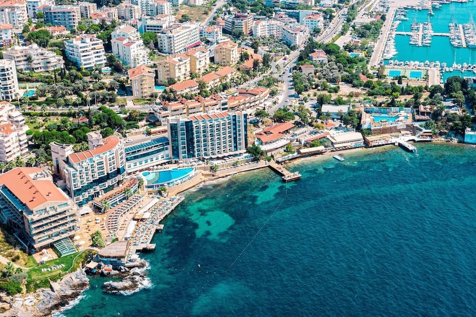 Featuring a 60-metre private beach, the 5-star Charisma offers an infinity pool with sweeping views of the Aegean Sea. It is a 15-minute walk from Kuşadası's shopping and entertainment area. All standard rooms have a sea-view balcony and spa bath. License number: 014684