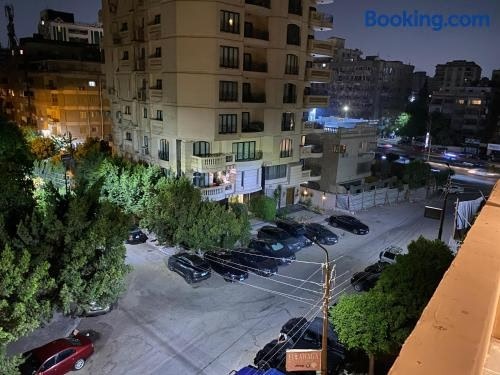 A recently renovated apartment situated in the Heliopolis district of Cairo, Sunny Oasis 1BR Apartment near Cairo Airport - A Luxurious Retreat offers accommodation with with a terrace, parking on-site and free WiFi.