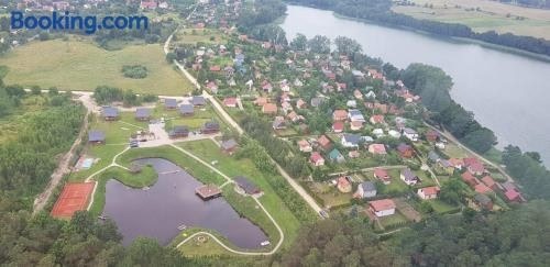 Set only 40 km from Święta Lipka Sanctuary in Ryn, Domki cało roczne z własnym stawem nad jeziorem offers accommodation equipped with a balcony, garden and outdoor pool. This property offers access to a terrace and free private parking.