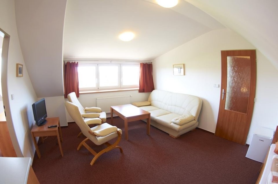 Penzion Na Stavidle provides accommodation in Uherské Hradiště. This 3-star guest house offers a lift and a shared kitchen. The guest house also offers free WiFi, free private parking and facilities for disabled guests.