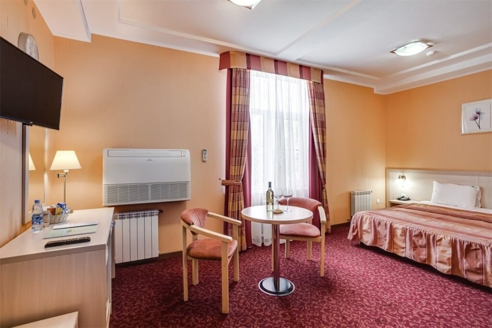 Relaxation and Views: Indulge in relaxation with a sauna or enjoy panoramic views from the rooftop terrace and garden.Modern Amenities: Benefit from complimentary Wi-Fi access throughout the hotel and convenient concierge services.Comfortable Stay: Unwind in one of the 27 air-conditioned guestrooms with free Wi-Fi, cable TV, and daily housekeeping.For a memorable stay in Rostov-on-Don, book your room at Park-City Hotel and explore nearby attractions within minutes.
