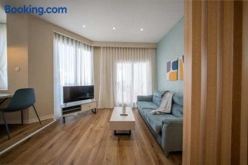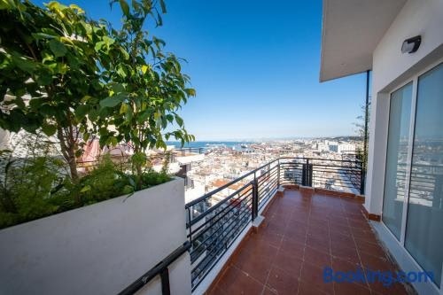Cross views city, sea位于LʼAgha,配备带阳台和免费WiFi的自助式住宿。 这家空调公寓配有1间独立卧室、带冰箱和烤箱的设施齐全的厨房以及1间浴室。这家公寓还提供平板电视以及1间带吹风机的浴室。 胡阿里·布迈丁机场距离住宿有17公里。