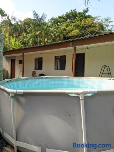 Casa de sossego位于马蒂尼奥斯,距离布拉瓦卡伊奥巴海滩(Praia Brava de Caioba)有2.2公里,距离魔法洞穴有38公里。这家住宿提供私人泳池和免费私人停车位。 这家度假屋配有2间独立卧室、起居室、设施齐全的厨房以及2间浴室。这家度假屋也拥有休息区和2间浴室。 这家度假屋提供室外泳池。