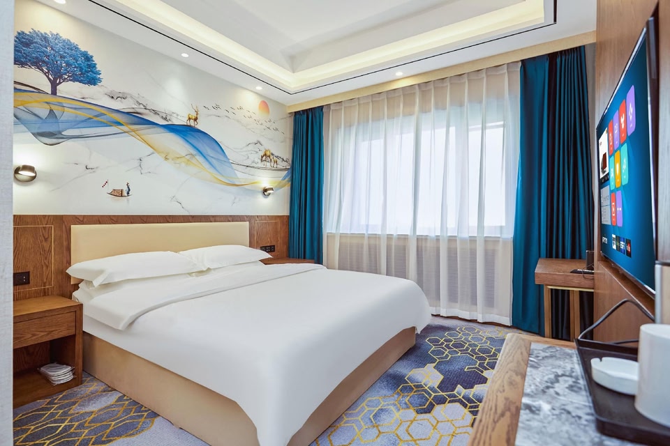 酒店地址:位于繁华的南大街和迎恩路交叉口,本酒店的高档客房全部采用高档原木装修风格,并配备全屋智能家居、餐厅配有10个不同规格的高档包间,可容纳200人左右同时就餐。并配有健身房、洗衣房. .. .. .一应俱全。交通出行便利: 临近中央步行街,俄罗斯商品一条街,距离海关驱车仅3分钟,距黑龙江江边驱车仅2分钟,步行约8分钟。距黑河市火车站、客车站出租车起步价,距离机场车程约20分钟,可提供接送机服务,毗邻俄罗斯布拉戈维申斯克市坐船约3分钟,十分便利。临近一小、二小、四小、五小、七小、二中、三中、五中。门口便是小早市,可体验网红国际早市文化。 餐饮娱乐购物周边配套齐全:齐市家庭烤肉、柴火妞铁锅炖、地主大院铁锅炖、德洛克西餐厅、列娜西餐厅、金湖洗浴、华富购物广场、商联大厦、海华购物广场、万达电影院、海华电影院、俄品多、俄罗斯一条街、江边带状公园、网红图书馆、中俄大桥公园、腾冲公园. .. .. . 酒店周边游:黑河滑雪场、黑河江景游、黑河大岛贸易城、爱辉博物馆、俄罗斯风情园、锦河大峡谷、五大连池风景区. .. .. .是本地游及出境游优质去处。酒店全体员工期待您的光临!